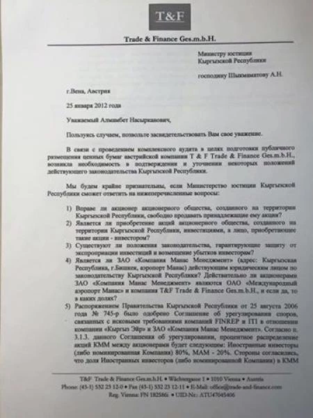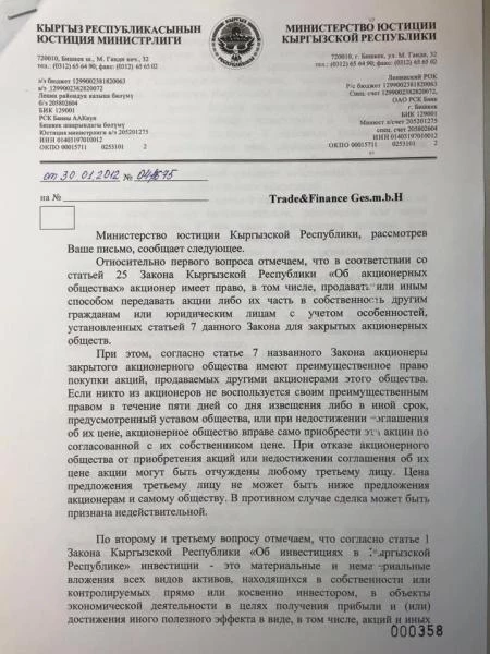 В свою очередь, среди возмущенных депутатов фракции «Ата Мекен» был экс-министр юстиции А.Н.Шыкмаматов, который в 2012 году будучи министром сам рассматривал письмо от австрийской компании «Trade&Finance Ges.m.b.H» о продаже акций ЗАО «ММК».